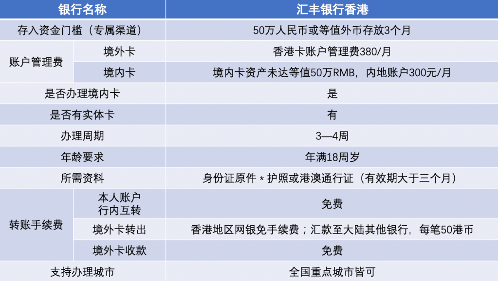 PS:汇丰银行我们在全国重点城市都有合作关系,可以在当地进行预约办理,各地的办理条件基本一致。不过港卡政策在内地调整频率较高,上方所列的标准信息未必百分百准确,请谅解。点击在线文档查看最新更新信息,此文档会不定时进行在线更新。