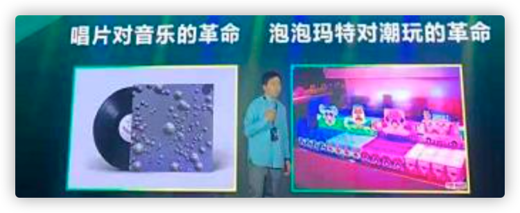 我觉得泡泡玛特这几年的努力,我们用一个全新的方式帮很多艺术家,新的或者说更多样化的商业模式去把整个行业有一个非常大的推动,就相当于是对当年唱片对音乐的革命一样。