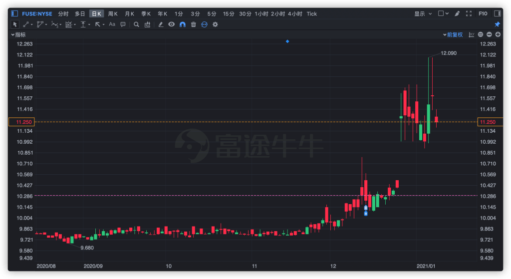 FUSE,全称是Fusion Acquisition Corp.,成立于美国特拉华州,总部位于纽约,2020年6月26日在纳斯达克上市,我们先来看一下它的招股书,链接地址:https://sec.report/Document/0001213900-20-016189/f424b4062820_fusion.htm。目标是并购金融服务行业中企业价值约为7.5 亿至30 亿美元的企业,尤其是金融科技或财富、金融咨询、投资和资产管理的公司。FUSE的截止时间是2021年12月31日,也就是还有一年时间,但是公司希望在2021年的第一季度只第二季度初宣布目标。