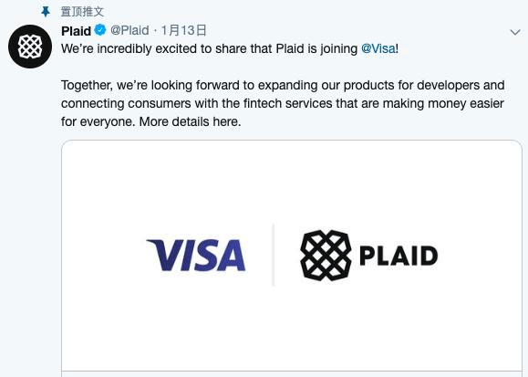 - 2021年1月12日-Visa取消收购Plaid。