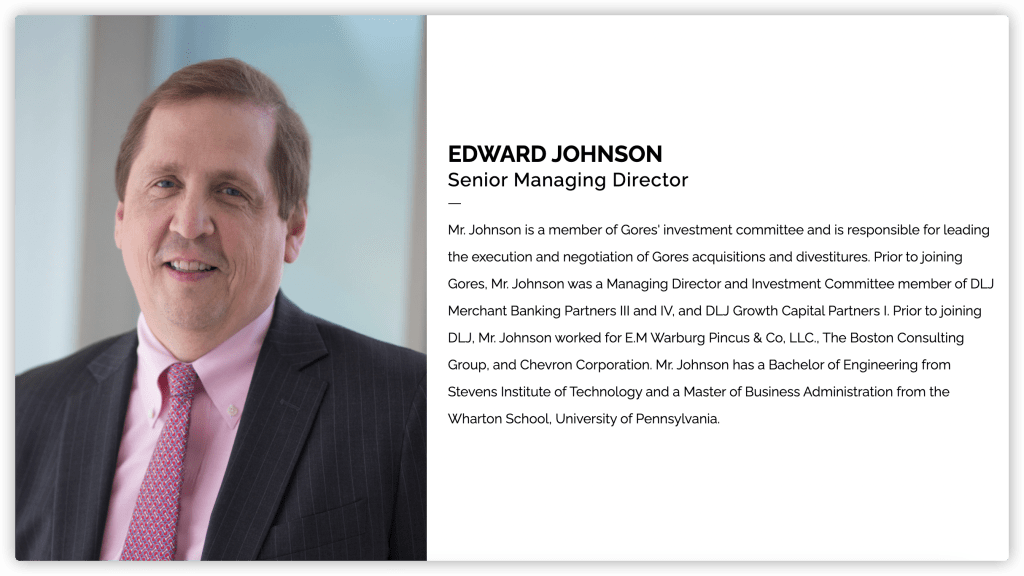 第二位EDWARD JOHNSON,在GHIV之前是DLJ Merchant Banking Partners III和IV,以及DLJ Growth Capital Partners I的常务董事兼投资委员会成员,再往前是在波士顿咨询集团和雪佛龙公司工作,官网没有提职位,说明之前没有做到高管。