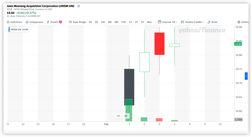 JWSM目前的价格是10.84美元,但是要注意,这是一个单位的价格,不是一个正股的价格,预计的单位分割日期是2021年3月26日,还有段时间。