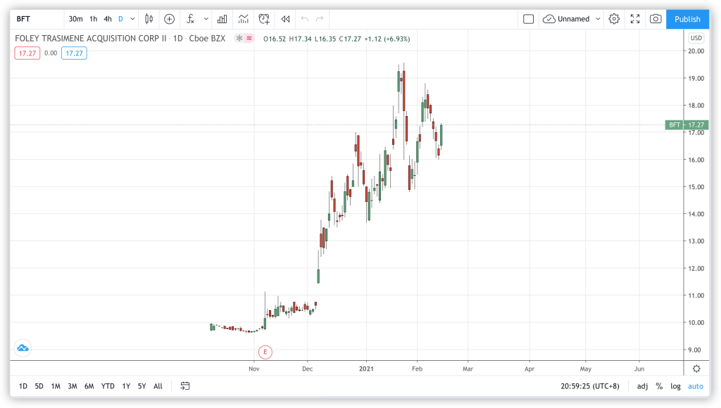 回来看一下股价,目前BFT也是宣布合并有段时间了,但是股价也没有走出正常的SPAC行情,而是一直稳步上涨的,这说明了市场对于BFT和paysafe的认可,目前股价是17.27美元,我个人认为,BFT还将稳定向上走,到30美元是没什么大问题的,后面也有希望看到50、60美元。