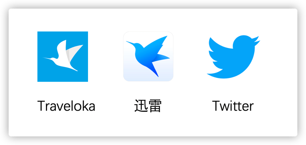 可以看一下这个图,Traveloka的logo还挺像是中国的迅雷的,或者也有点像Twitter的logo,都是一只蓝色的小鸟,只是朝的方向不一样。