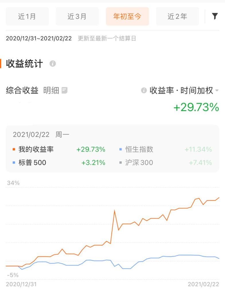 我的账户至今还是基本上零回撤,这两个月收益接近30%,去年8个月接近40%。因为我的操作基本上以中长线为主,去年的持仓到现在基本上还没有换手呢,今年两个月收益比较大,主要是去年做的布局,今年到了收获的时刻。很多国内朋友说不敢炒美股,害怕晚上睡觉的时候,行情发生巨大的变化,还是没有涨跌停的。其实这还是几个点的问题,第一是选择标的,第二是选择入场点位,第三是仓位比例,第四是不设止损。这几点只要做好了,基本上不用担心出什么大的问题。可能让我真正紧张的行情只有去年3、4月份那时候的连续熔断。但是那种行情是十多年才会发生一次的。前面几点做好了,账户出乱子的概率就不大了。