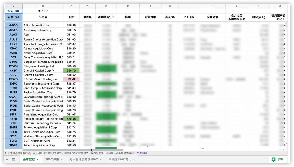 同一管理层运营的多SPAC:Google 文档内更新,更新频率约一周更新一次到两次