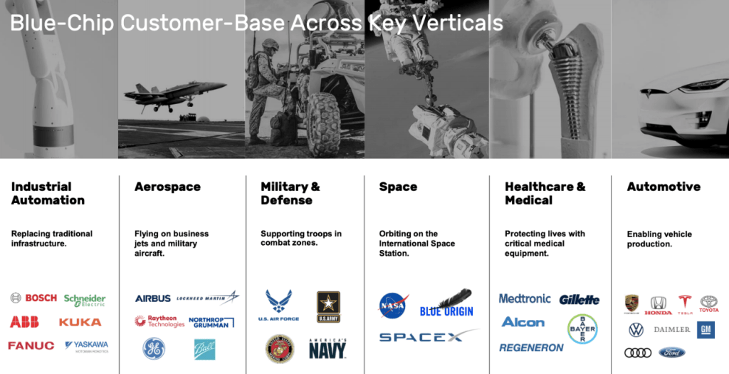 Markforged的平台通过解决工业自动化、航空航天、军事和国防、太空探索、医疗保健以及医疗和汽车等关键垂直领域的苛刻应用,为客户提供有形价值。他们可以将精确可靠的 3D 打印机与工业级材料和基于云的机器学习软件无缝结合,为现代制造商提供资源,以创建更具弹性和敏捷的供应链,同时节省时间和金钱。目前,他们与包括美国宇航局、微软、谷歌、亚马逊、迪斯尼、特斯拉、丰田、保时捷和美国空军在内的客户合作。