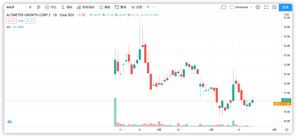 最后我们来看一下股价。AGC目前的股价是13.5,进入2020年12月之后直接进行了跳开。而AGCB经过AGC的铺垫,发行之后也直接跳开,从12.5美元左右开始,目前的股价是11.11。因此,我个人认为,AGC应该是先官宣的概率比较大,那么可以先着手布局买入AGC,AGCB可以先观察一段时间,或者买入一个底仓。AGC目前的价格还不算高,可以考虑在12附近买入。
